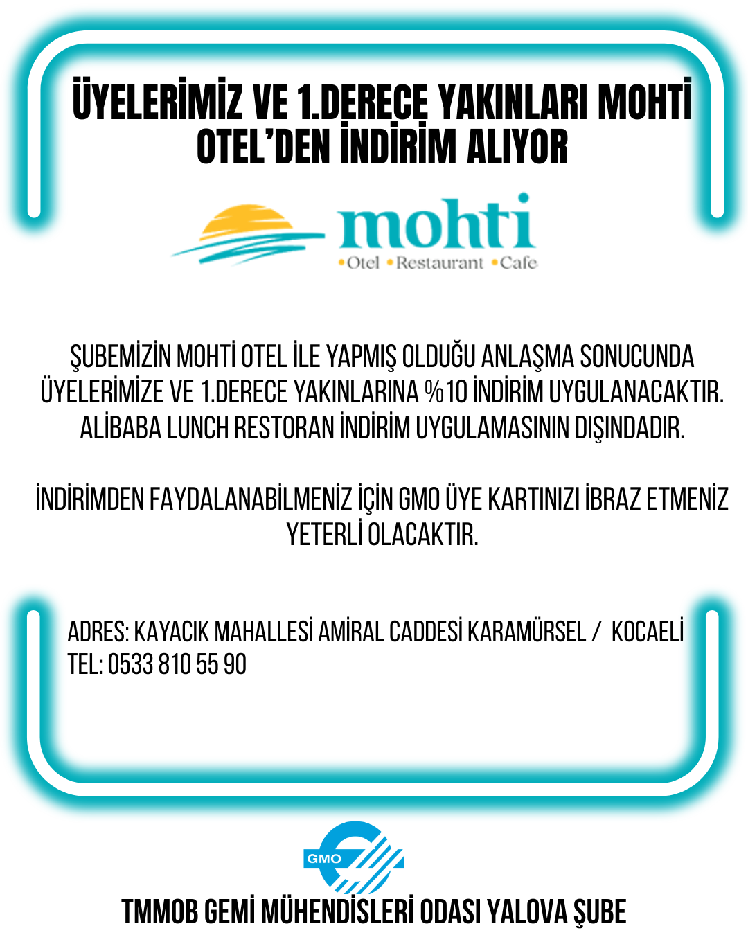 ÜYELERİMİZ VE 1.DERECE YAKINLARI MOHTİ OTEL’DEN İNDİRİM ALIYOR.